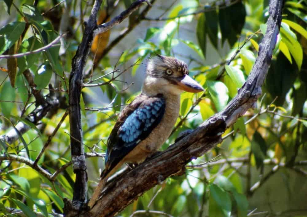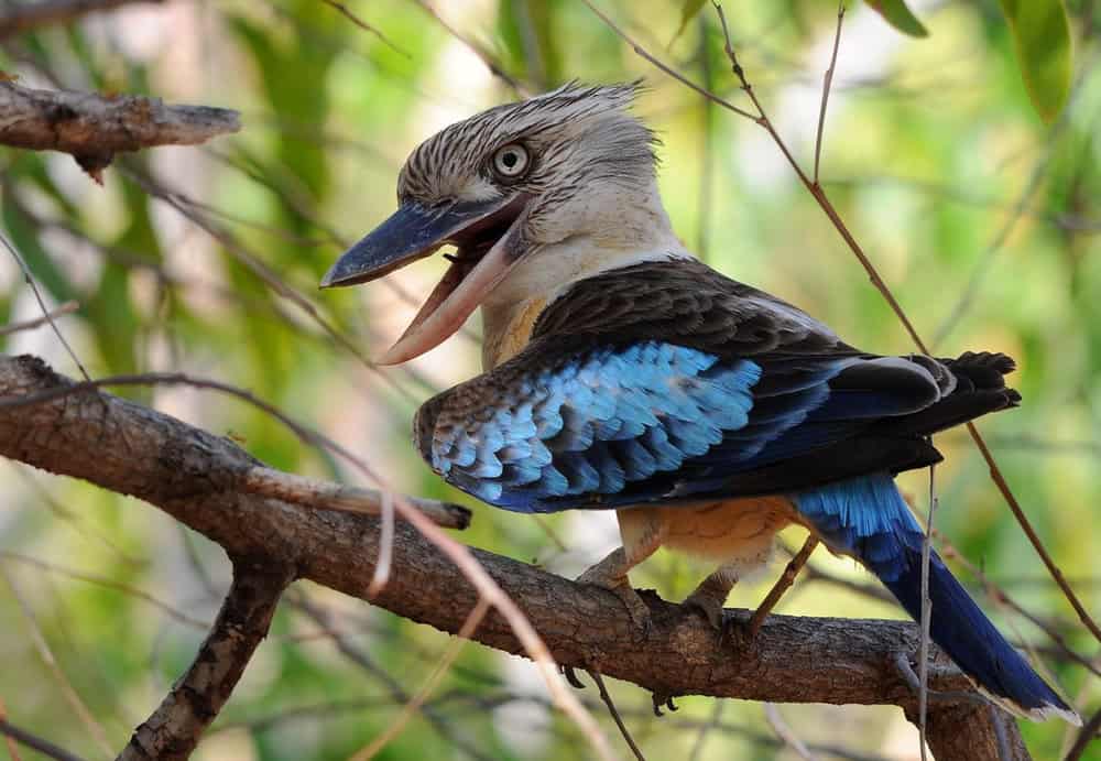 Unlike its close relative, the Laughing Kookaburra, the Blue-winged Kookaburra prefers areas away from human settlements and is more commonly spotted in remote and undisturbed environments.