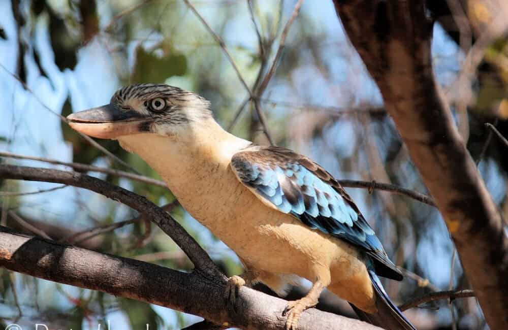 The Blue-winged Kookaburra is a large member of the kingfisher family, recognized for its robust build and impressive size. It typically measures between 40 and 45 centimeters in length, making it one of the most giant kingfishers in Australia.