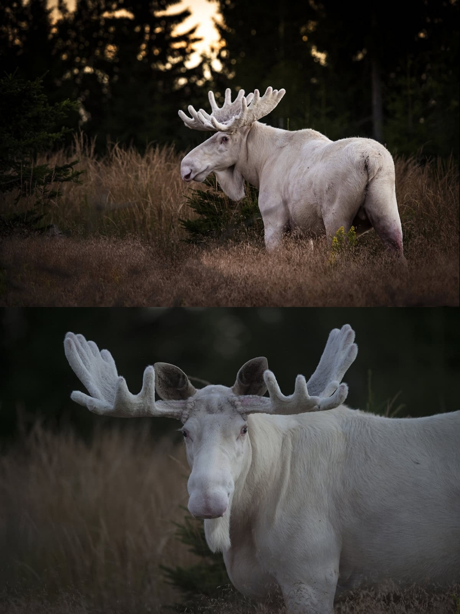 Stunning Encounter: Photographer Captures Rare White Moose in Sweden