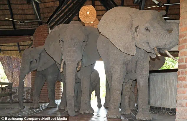 Ian describes this annual phenomenon: “From late October every year, families of elephants visit the lodge grounds to feed on the fruit of a ‘wіɩd mango’ tree, often taking a shortcut through the actual building.”
