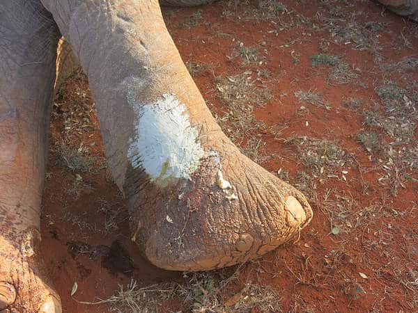 The injured elephant received systemic broad-spectrum antibiotics, anti-inflammatory medication, and Vitamin B-Complex to stimulate metabolism.