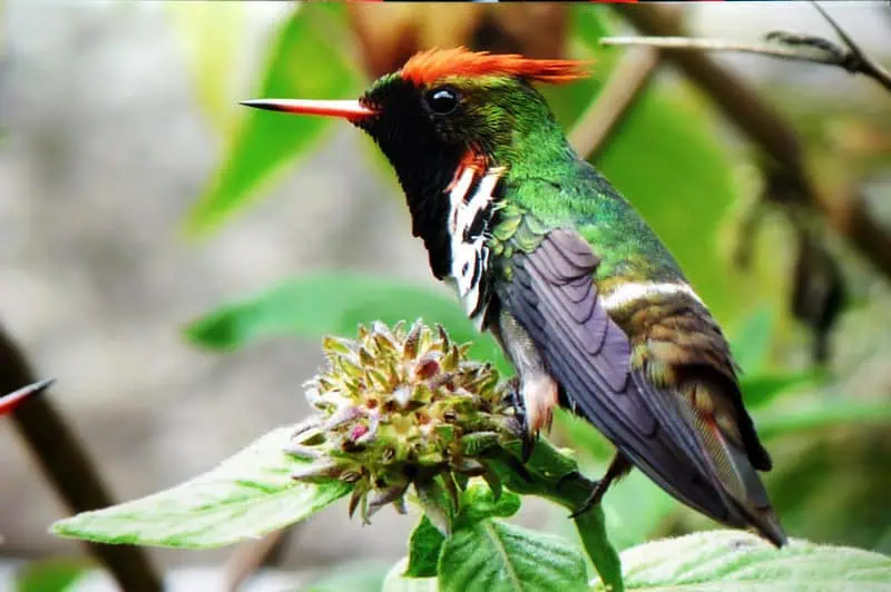 The frilled coquette, a hummingbird no bigger than the size of a finger, displays a brilliant combination of colors and unique features.