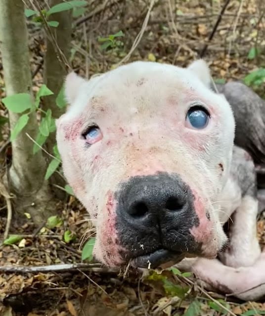 Local news reported that Halo was discovered lying in the woods, appearing as if she had resigned herself to waiting for death. Her blindness was evident from her cloudy eyes, showing her need for urgent help.