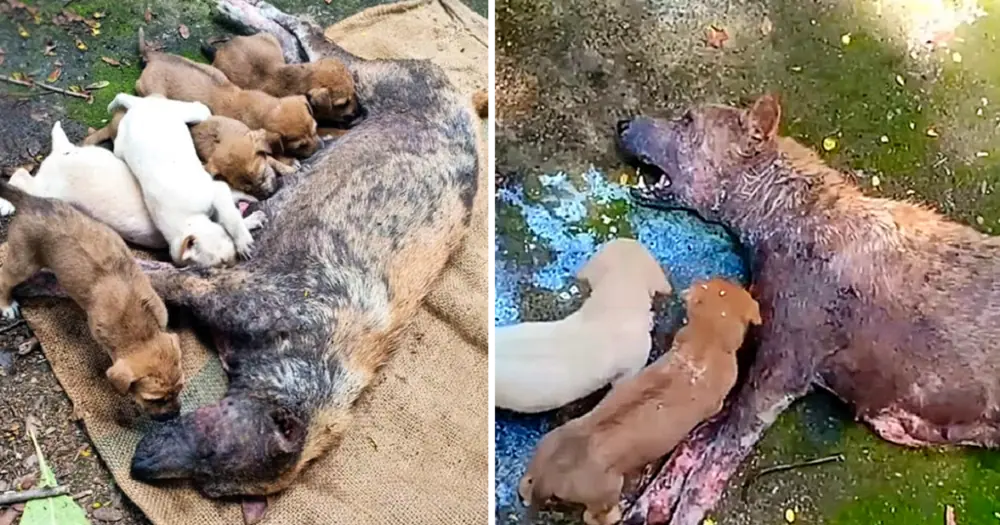 A heart-wrenching scene unfolded at a garbage dump where a compassionate person discovered a mother dog in dire straits. Despite her inability to stand, she desperately tried to nurse her puppies.