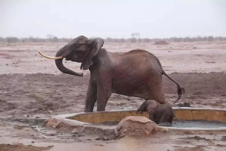 Upon arrival, the rescue team found the mother elephant circling anxiously around the watering hole, trying to understand what had happened to her baby.