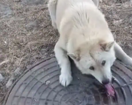 In a heart-wrenching incident amidst the bitter cold, a distressed dog was in a difficult situation, its tongue frozen and stuck to a maintenance hole cover.