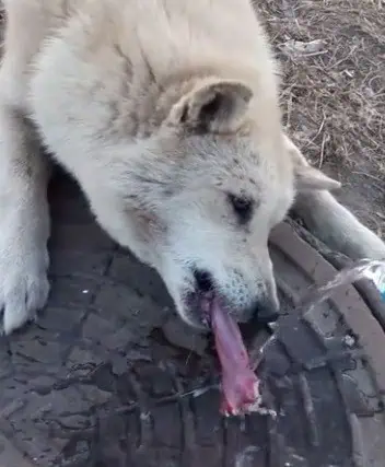 The helpless canine was spotted by a passerby, who couldn’t ignore the animal’s cries for help. Acting swiftly, he poured water from his bottle onto the dog’s tongue, hoping to thaw the ice and release it from its icy trap.