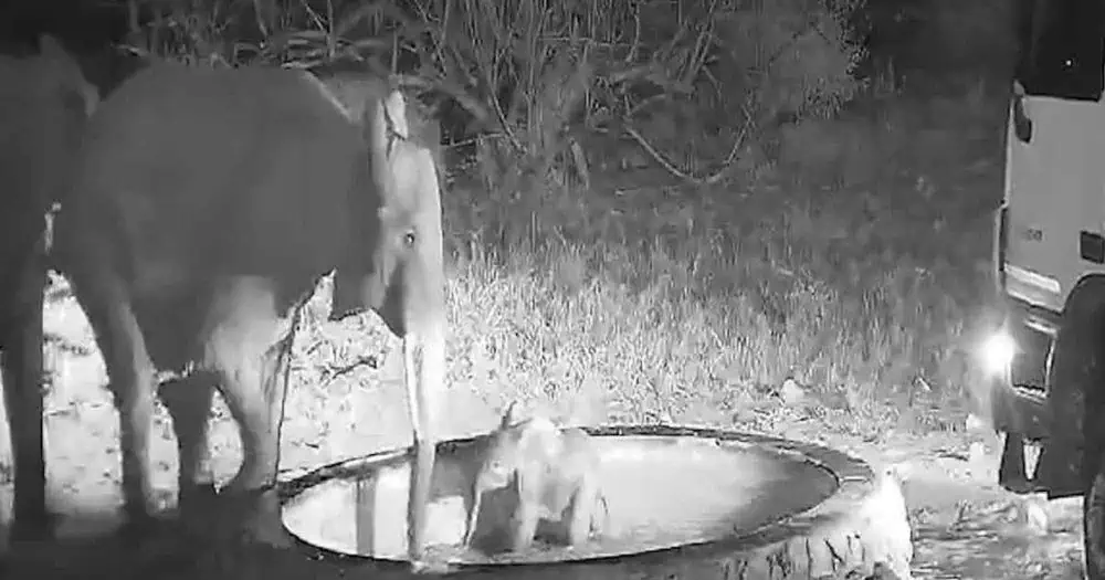 The footage shows the baby elephant’s family attempting to free him from the hole, but their efforts are in vain. Despite the baby’s determined attempts, he remained trapped.