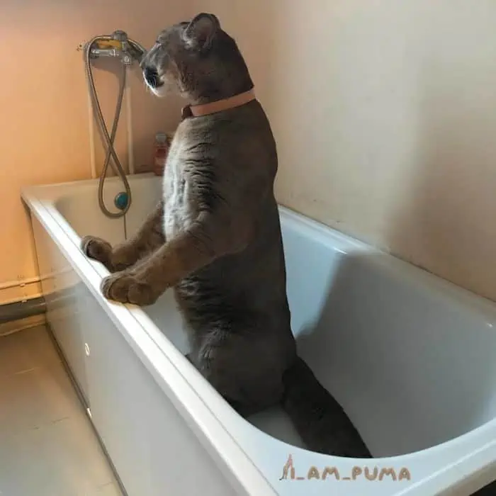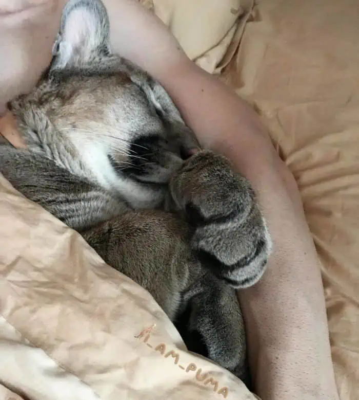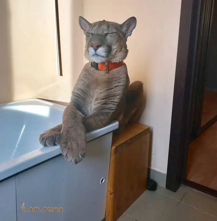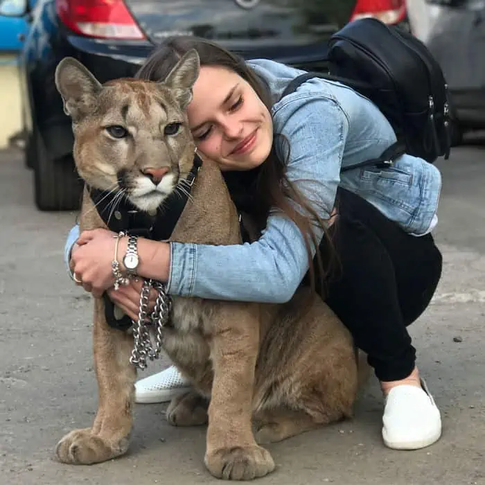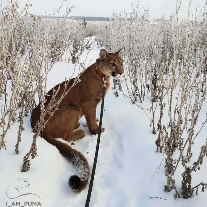 Despite his recovery, Messi remained more minor than the average puma, needing regular exercise, prompting the Dmitrievs to outfit him with a coat and harness for outdoor walks.