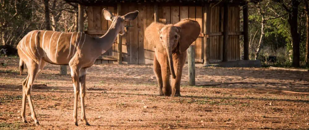 Despite the challenges of infancy, Thamana thrived under the care of his keepers and the companionship of orphaned elephant Lemeki.
