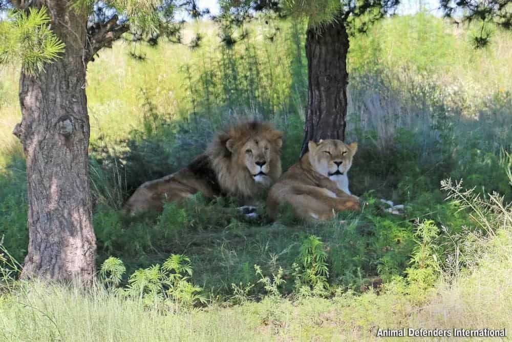 In 2014, Animal Defenders International (ADI) rescued Leo, Moneca, and their cubs from a circus in Peru, providing them a refuge from the harsh conditions typical of circus life.