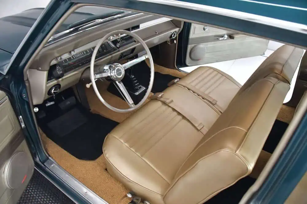 The exterior of the 1967 Chevrolet Chevelle 300 Deluxe is a visual delight. The original metal body, in excellent condition, showcases a rare factory color combination – Tahoe Turquoise.
