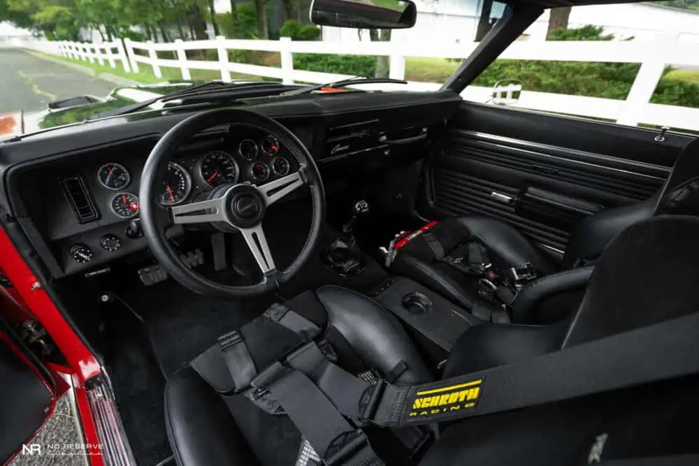 Step inside, and you’ll find a blend of modern comfort seamlessly integrated into a classic design. Every element exudes attention to detail and craftsmanship, from the Detroit Speed dash insert to the Recaro sports seats.