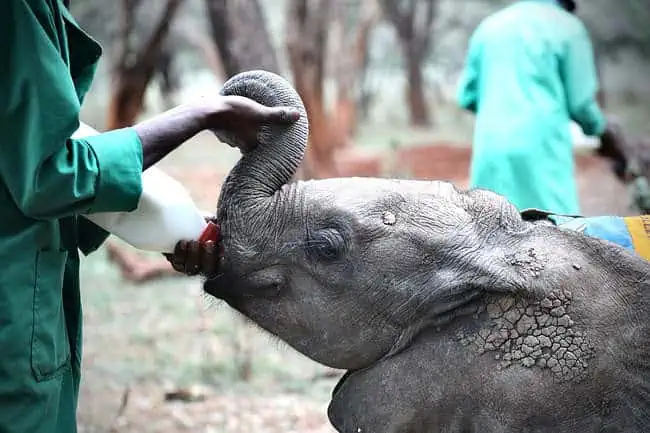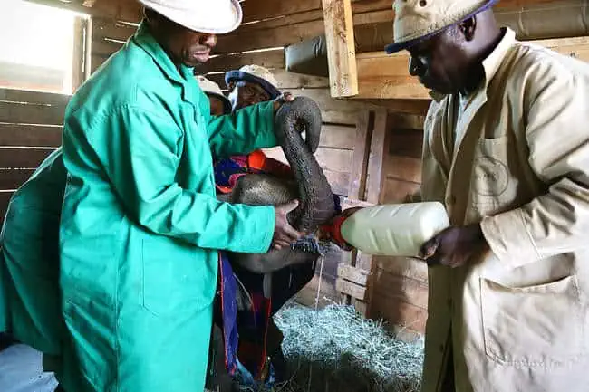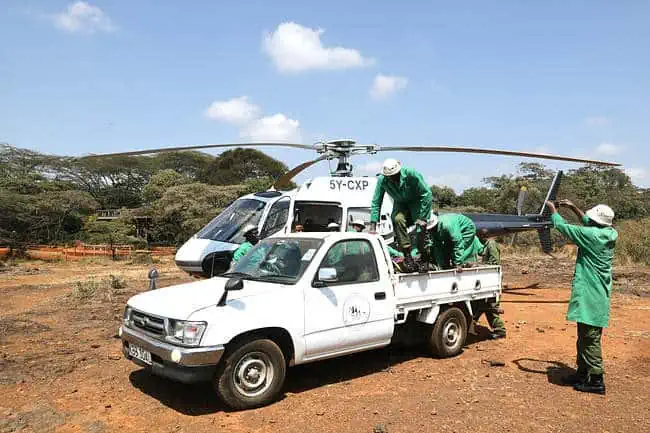 Recognizing that he was too small to grow up at Voi, the Sheldrick Wildlife Trust (SWT) helicopter transported him to the Nairobi Nursery the following morning.