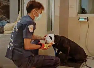 The injured dog, later named Black Bangpakong, could not stand on his own and required immediate aid.