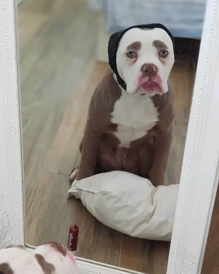 Madame Eyebrows, an English bulldog, has captured hearts with her perpetually sad expression, owing to the grey patches above her eyes that resemble eyebrows.