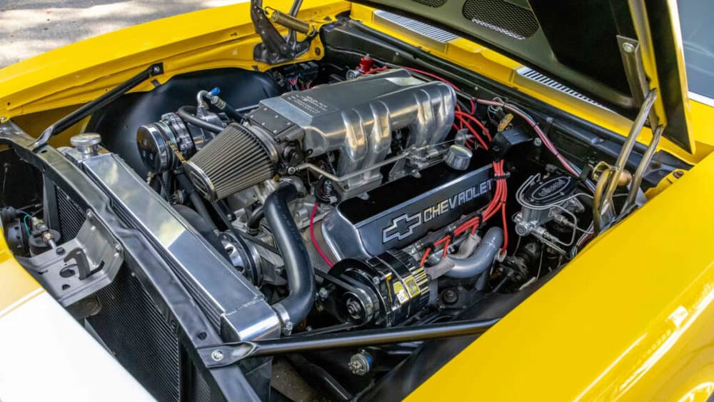 To tame the raw power, the 1968 Camaro boasts Detroit Speed front suspension and sway bar, complemented by Detroit Speed subframe connectors.