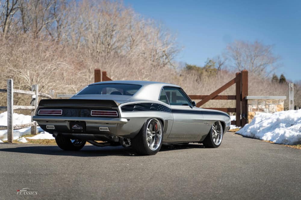 Moving to its exterior, the 1969 Chevrolet Camaro RS/SS Supercharged LS3 Pro-Touring is a sight to behold.