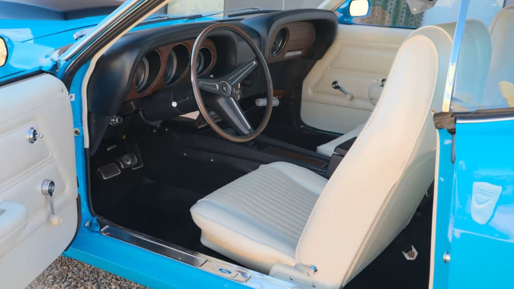 Painted in the period-correct Grabber Blue, this classic muscle car commands attention wherever it roams, embodying the bold spirit of the ’70s. It’s not just a car; it’s a statement of American automotive excellence.