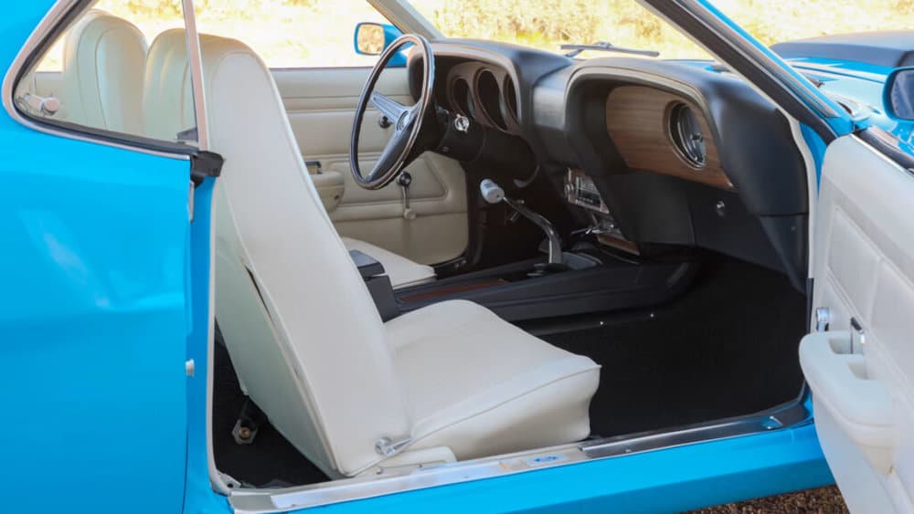 Complemented by Magnum 500 chrome wheels and correct Goodyear Polyglas tires, the Boss 429 exudes visual appeal while enhancing its performance and handling.