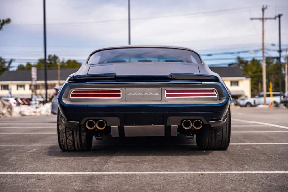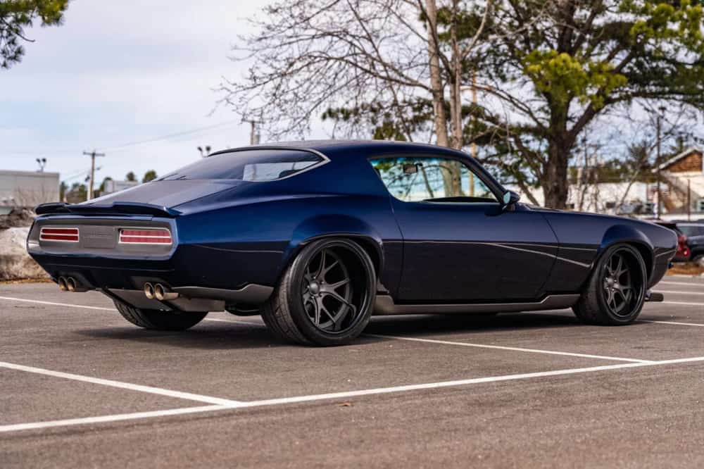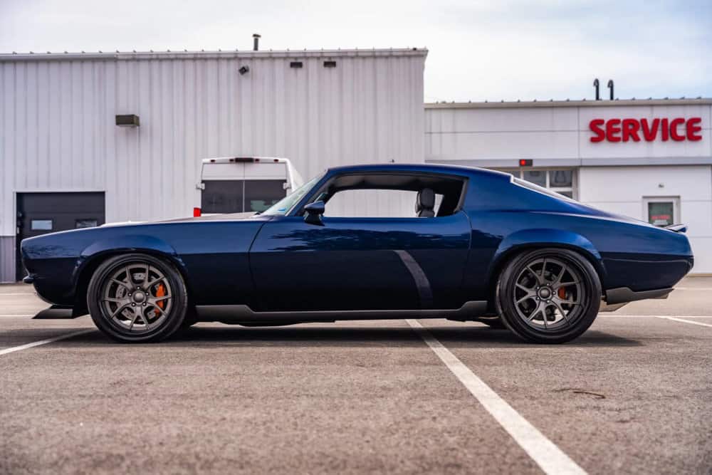 Further enhancing its allure are recessed split bumperettes, full-length floating rockers, extended wheel-opening flares, fog lamp intake funnels, shaved door handles, and billet 1969 Camaro-style taillamps.