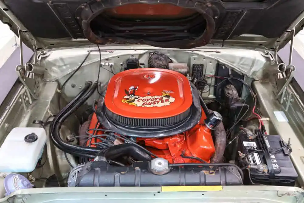In pristine condition, the engine bay features the Road Runner’s distinctive “beep beep” horn.