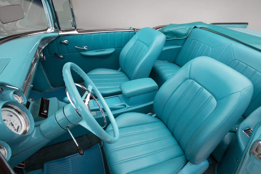 The flawless bodywork, complemented by the gleaming Tropical Turquoise paint, pays homage to the 1950s Chevy aesthetic.