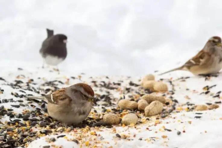 Seeds are carbohydrates, so some seedeaters supplement their meals with protein-rich insects. The seeds have little water, so you will see the seedeaters drinking much water. Seeds are harder to come by in the drier areas, so most seedeaters there are nomadic.