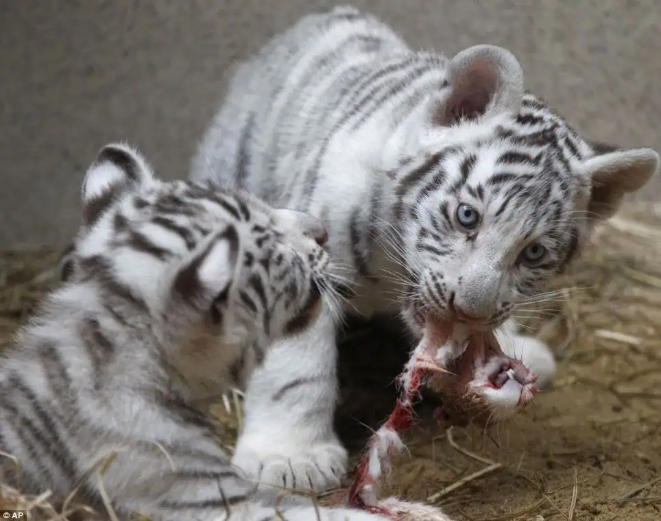 Over the past century, only a dozen white Bengal tigers have been spotted in the wild, with most living in captivity.