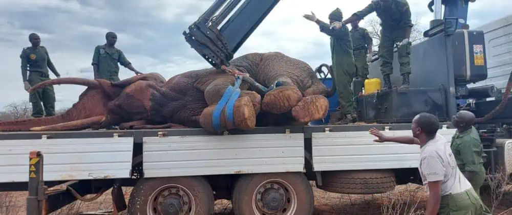 Ground teams from KWS and SWT meticulously disinfected the wound, secured the elephant with straps, and delicately lifted him onto the specially designed crane truck.