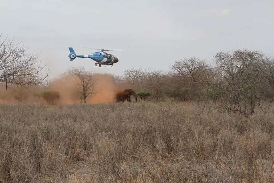 Managing a full-grown elephant requires precision, and the operation kicked off with the SWT helicopter darting the bull.